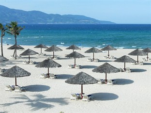 Southwest of Danang and elegantly situated near a beautiful sand beach, this popular upscale pearl has a grand lobby that is more or less the gilded frame to beautiful scenery: sand, sun, and sky.